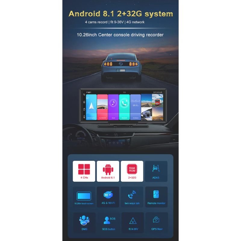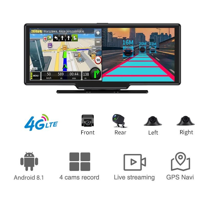 The D12 Dash Camera is not just a camera—it’s a full-fledged intelligent vehicle monitoring powerhouse designed for complete 360-degree surveillance, smart security, and enhanced in-car connectivity. With its large 10.26-inch touchscreen display and a total of four high-definition cameras (front, rear, left, right), this system transforms your car into a digital command center. Whether you’re managing a fleet or safeguarding your personal ride, the D12 empowers you with real-time 4G video, GPS-based tracking, and optional safety features like ADAS and DMS—all integrated into one sleek, multifunctional dashboard unit.