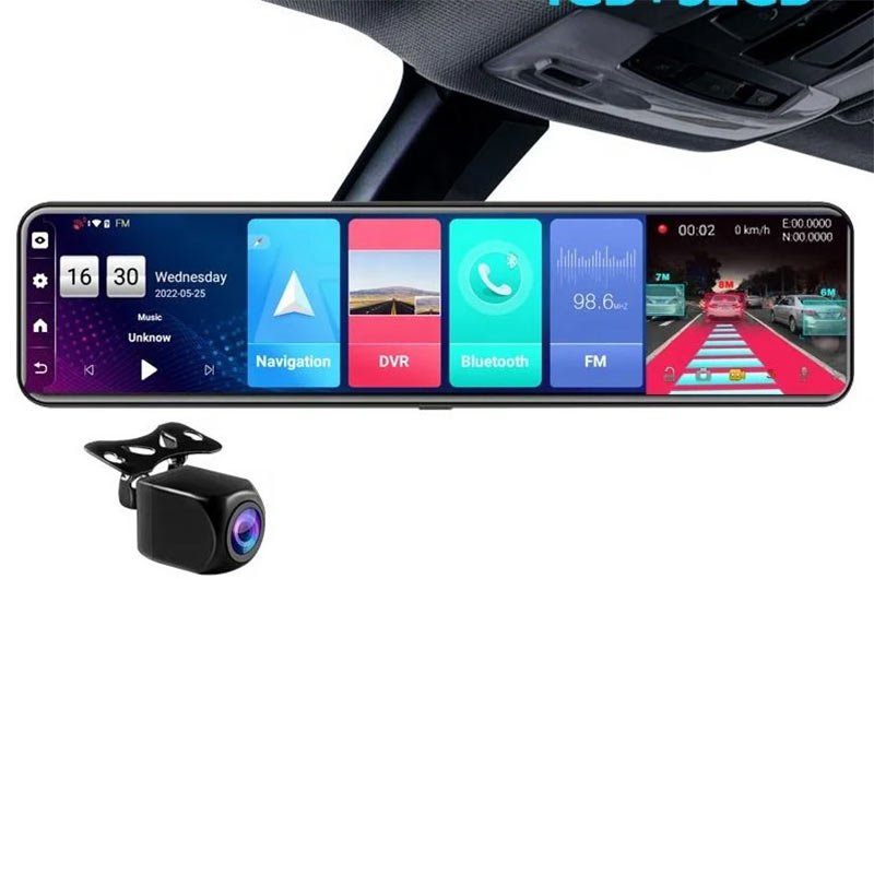 Triple split screen, 12-inch touchscreen, and dual full HD cameras ensure you see everything around your car without additional monitors or screens. -
