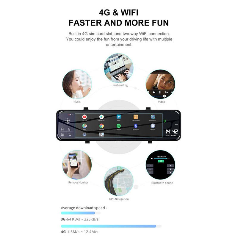 GPS tracking, Bluetooth, Wi-Fi, and ADAS assist you with real-time positioning, driving alerts, and even reverse parking, making it a solid safety tool. -