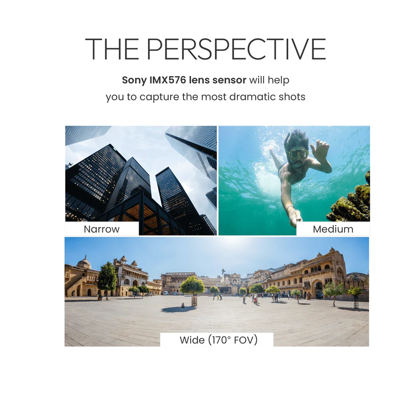 Capture cinematic and immersive shots with the 170° ultra-wide lens, ensuring more of the scene fits in every frame—ideal for landscapes, action sports, and vlogging.