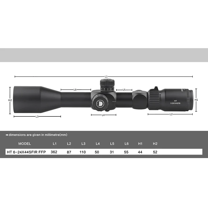Specifications for Discoveryopt Optics 6-24x44mm SFIR Rifle Scope: