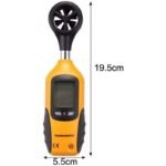 The digital anemometer measures air velocity in five units of measure: m/s, km/h, ft/min, knots, mph. It can also measure the temperature at the same time.