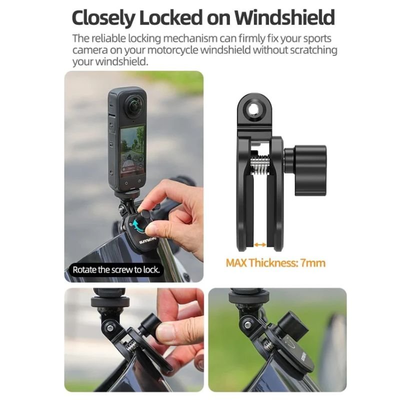Motorcycle Windshield Mount for Action Cameras & Osmo 360