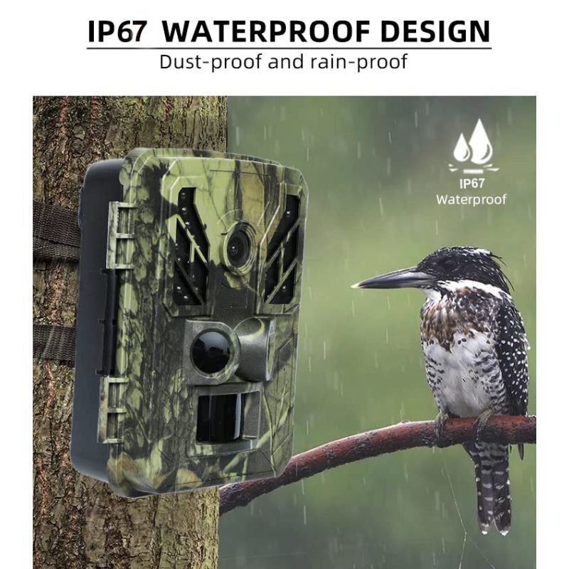 Waterproof, Dustproof, and Wildlife-Proof: Rated IP67, this camera is fully equipped to handle tough jungle conditions. Rain, snow, or mud – it keeps working. Its sturdy build and sealed design protect it from dust, insects, and extreme humidity.